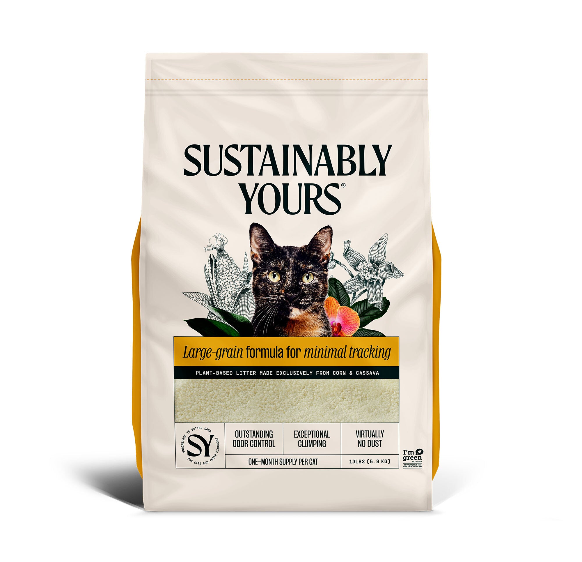 At Sustainably Yours, we set out to create a litter that is both high-performing and environmentally friendly. Our plant-based formula is full of benefits for both you and your cat—all while remaining sustainable. Large-grain formula for minimal tracking.